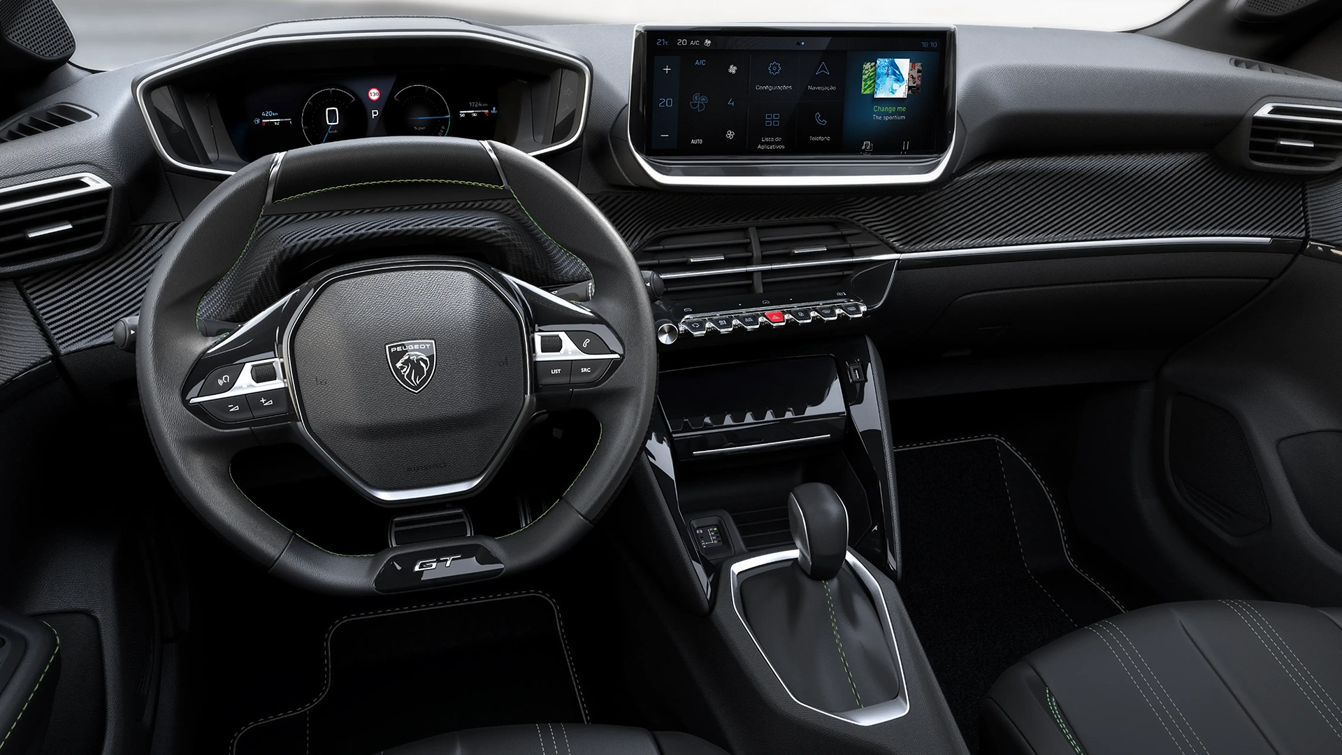 Com painel em posição elevada, as funções mais importantes do seu carro estão sempre ao alcance dos olhos e das mãos. Além disso, sua direção fica ainda mais elegante com o revestimento em carbono.